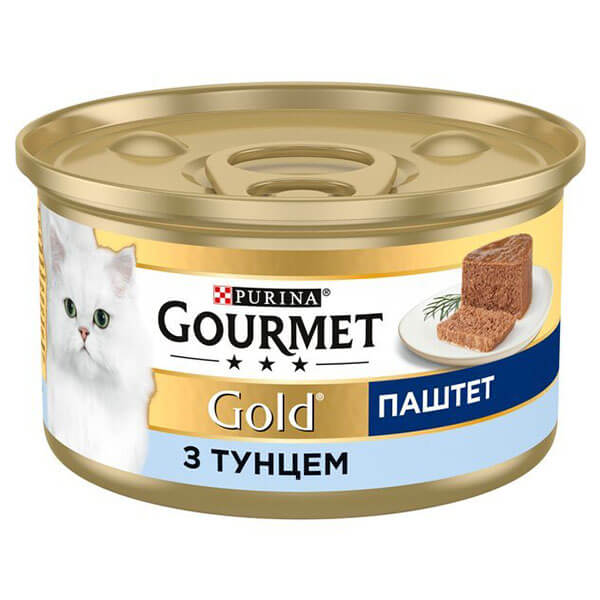 GOURMET Gold «Паштет с тунцом» — консервированный порционный полнорационный влажный корм для взрослых кошек. Нежная паштетная текстура и вкус тунца помогают разнообразить ежедневный рацион и подходят даже привередливым питомцам.