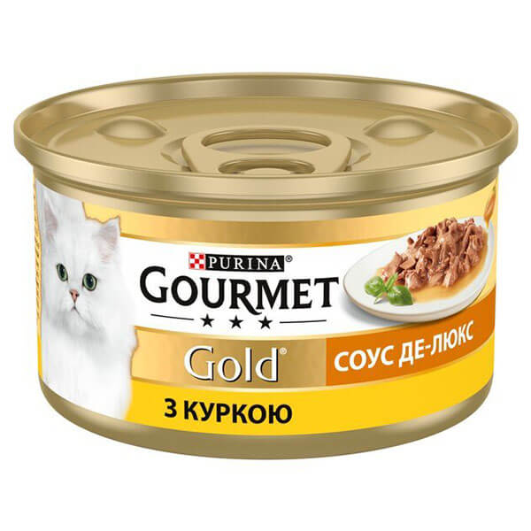 GOURMET Gold «Соус Де-Люкс: кусочки в соусе с курицей» — консервированный порционный полнорационный влажный корм для взрослых кошек. Нежные кусочки курицы в щедрой порции аппетитного соуса помогают разнообразить ежедневное меню питомца и поддерживать хороший аппетит.