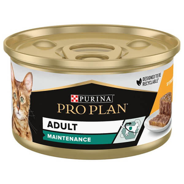 PRO PLAN Adult для кошек с курицей — консервированный порционный полнорационный влажный корм для взрослых кошек. Формат «шматочки в паштете» подходит для ежедневного рациона и помогает поддерживать гидратацию организма (как и другие влажные рационы для кошек).